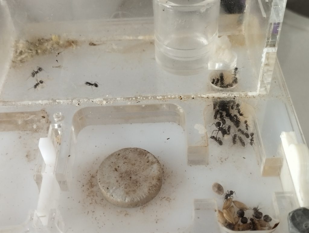 Tras navegar por internet y no encontrar nada, decidimos probar suerte y preguntarle a David (De el mundo de las hormigas). Para nuestra sorpresa, David nos respondió con un texto gigante y muy detallado en el que nos explicó diferentes causas y remedios para este problema. Nos ayudó mucho y le estamos muy agradecidos. Hemos probado varios consejos que nos dió como poner corcho/madera en el forrajeo, limpiar bien el forrajeo, que tengan todas sus necesidades nutricionales cubiertas, reducir la humedad… Des de aquí le mandamos un saludo. Gracias David!