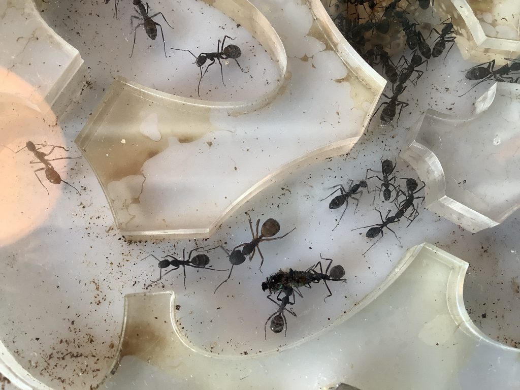 Estas hormigas me llegaron hace bastante. Fué la última colonia que compré para mí. Llegaron siendo 8 pero al poco tiempo murió una hormiga. Por suerte hace unas semanas nació una por lo que problema solucionado.